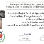 - 8Magyarok Nagyasszonya ünnep18:00Október 8-án, szerdán, Magyarok Nagyasszonya ünnepén a Mária-köszöntőt este 6 órától tartjuk a Szent Mihály-templomban. A szentmise után végezzük a rózsafüzért, majd körmenettel fejezzük be városunkért, közösségeinkért végzett imádságunkat. Szeretettel várunk! , ...